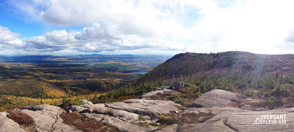 Pour ceux qui ne désirent pas faire la boucle du Pioui, vous pouvez monter directement par le sentier du Mont-du-Lac-des-Cygnes (que nous avons pris pour le retour) et faire un aller-retour. Ce sentier est plus facile et plus accessible pour les familles bien qu’il soit quand même un peu abrupt.