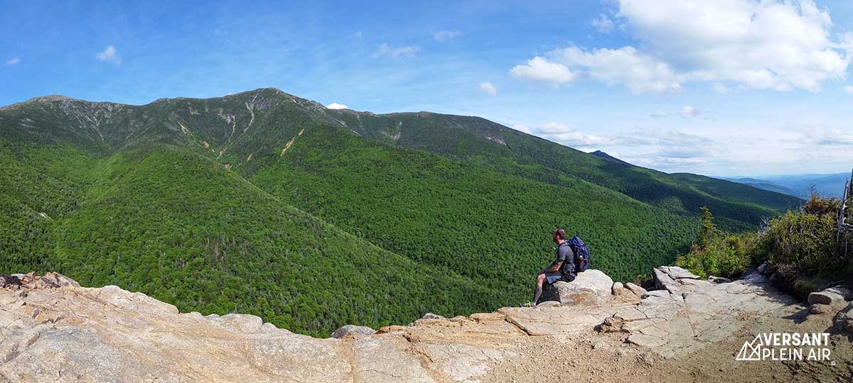 Nous avons commencé la randonnée par le sentier Falling Waters Trail. Plus on avançait, plus les gens se dispersaient malgré la foule. La montée est assez difficile et abrupte, mais une fois rendue au premier sommet (Little Haystack), on était déjà très fier de nous. Par contre, il ne faut pas se laisser décourager par les autres sommets au loin. Ils peuvent sembler loin, mais le plus difficile est passé.