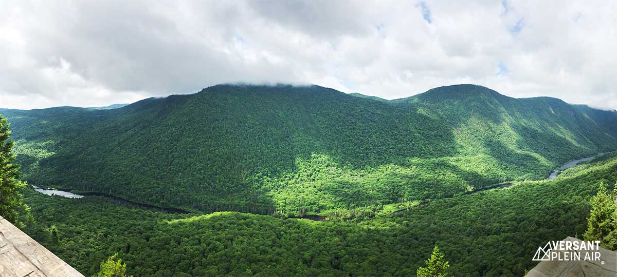 Le lendemain, nous nous sommes rendus jusqu’au Parc national de la Jacques Cartier pour aller marcher le long du sentier Les Loups. Le départ se fait au 16e km sur la route qui traverse le parc. La montée est soutenue et abrupte à quelques endroits, mais sinon la randonnée se fait très bien et tout est très bien entretenu. Le premier belvédère offre une vue magnifique sur la Vallée de la Jacques-Cartier, mais le deuxième, une fois rendue au sommet, est encore plus spectaculaire. Vous pourrez y apercevoir en plus la Vallée de la Sautauriski. Le retour se fait donc par le même sentier.