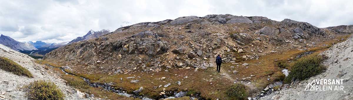 Le sentier Wilcox Pass commence quelques mètres avant d’arriver au Columbia Icefield, en direction de Japser sur le Icefield Parkway. La randonnée se résume à traverser la forêt pour émerger plus haut, marcher le long de l’autoroute avec une superbe vue sur le glacier Athabasca et enfin passer à travers le col en observant d’immenses sommets de chaque côté. Les mouflons se tiennent beaucoup dans ce secteur, et l’on peut souvent en observer de près. Malheureusement pour nous, la température était pluvieuse et froide cette journée-là. Nous n’avons donc pas pu voir d’animaux sauvages et nous avons été plutôt déçus lorsque nous avons atteint le point d’arrivée. Nous avons quand même continué notre route pour aller observer les activités du Columbia Icefield de plus près et nous avons eu une vue assez impressionnante.