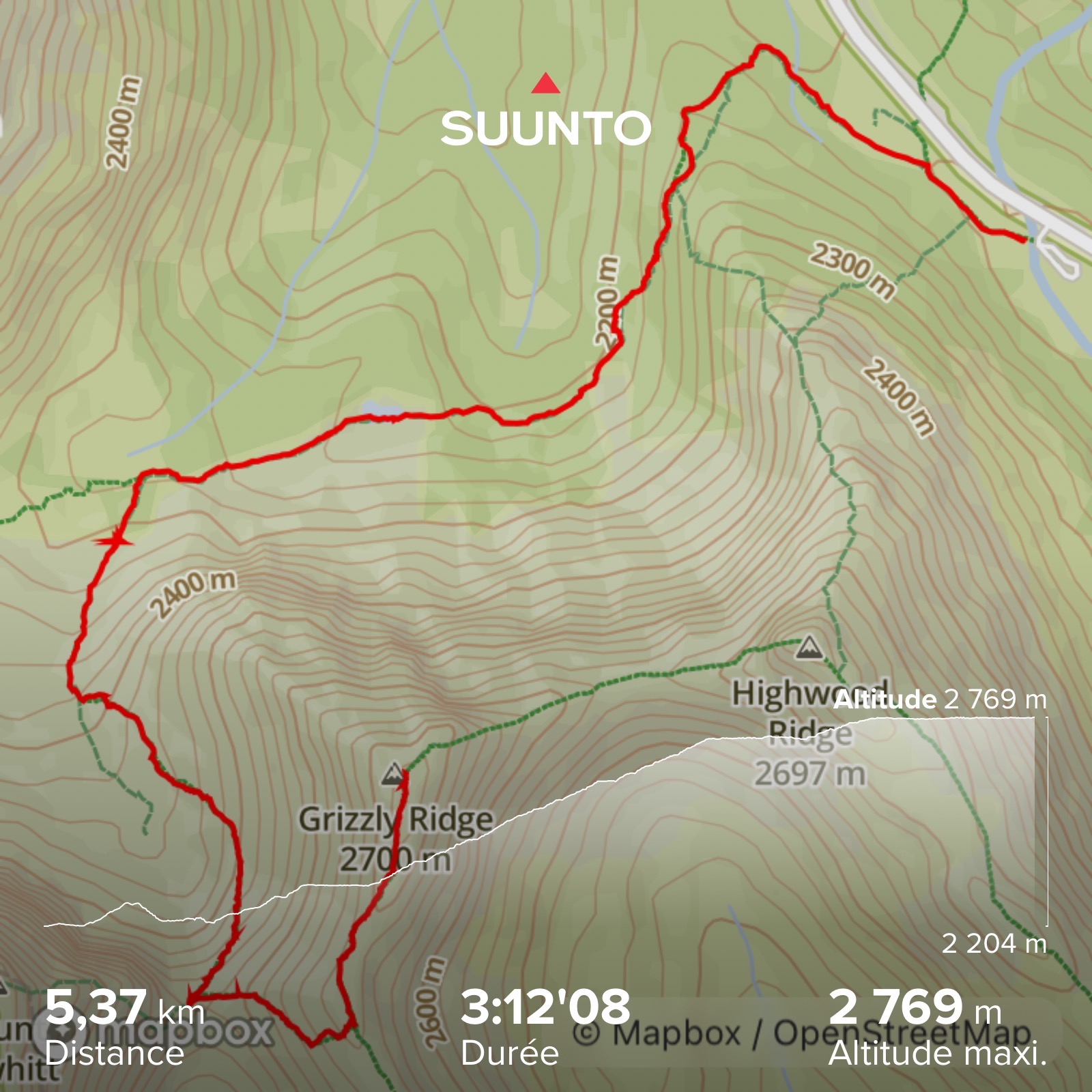 - Sentier : Grizzly col / Grizzly ridge