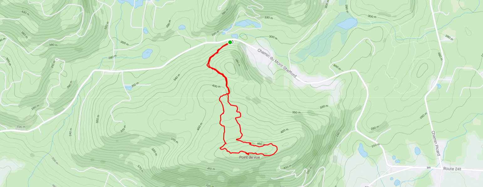En cette journée assez froide d’hiver, ça faisait quelques jours qu’on parlait de faire une petite rando en raquette avec mes nièces. On a décidé de bien s’habiller et d’y aller quand même, malgré la température. Heureusement, parce que ce fût une belle découverte ! Le sommet du Mont Shefford fait partie du Parc des Montagnards, qui regroupe 4,5 km de sentiers balisés. Nous sommes parties avec les raquettes dans les pieds, mais très vite on s’est rendu compte qu’elles n’étaient pas vraiment nécessaires vu que le sentier était assez tapé. Nous avons emprunté la piste rouge sur 1,9 km pour nous rendre jusqu’au sommet (voir la carte), et ensuite le jaune pour faire une petite boucle. Celui-ci revient tout de même sur le sentier rouge pour les derniers 800 mètres.