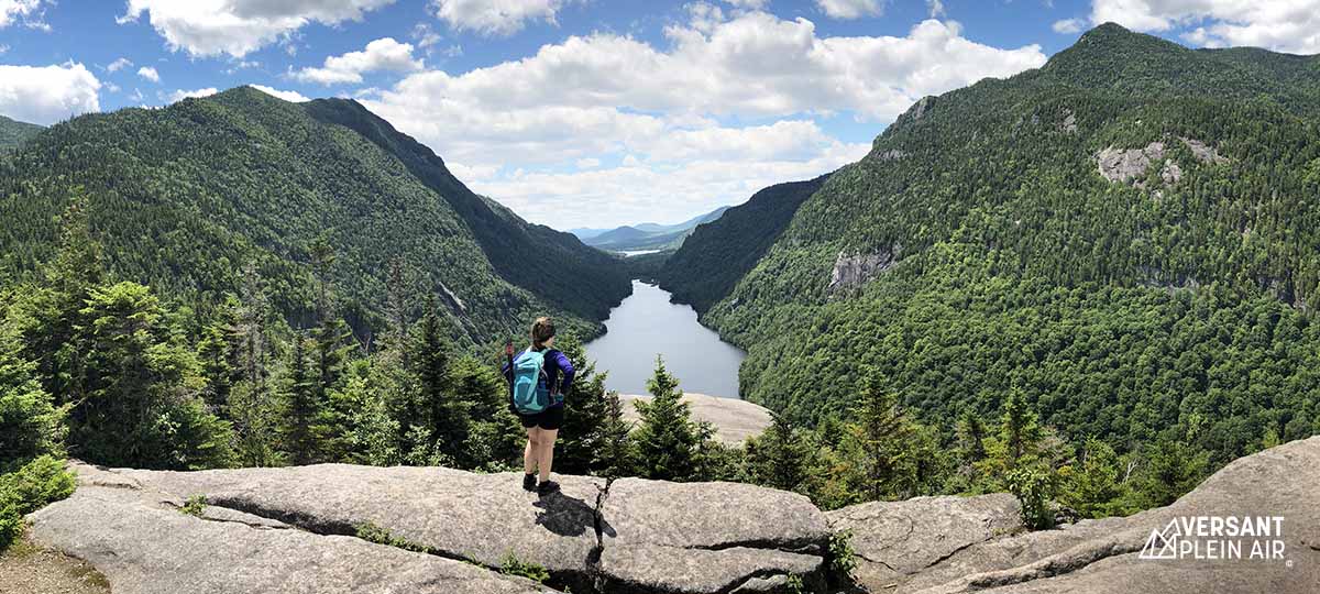 Le paysage est époustouflant !! De là-haut, le lac se situe droit devant avec les montagnes de chaque côté formant une incroyable vallée. Bien qu’on ne soit pas très haut, le panorama vaut le déplacement et il fait dorénavant partie de mes coups de cœur dans les Adirondacks.