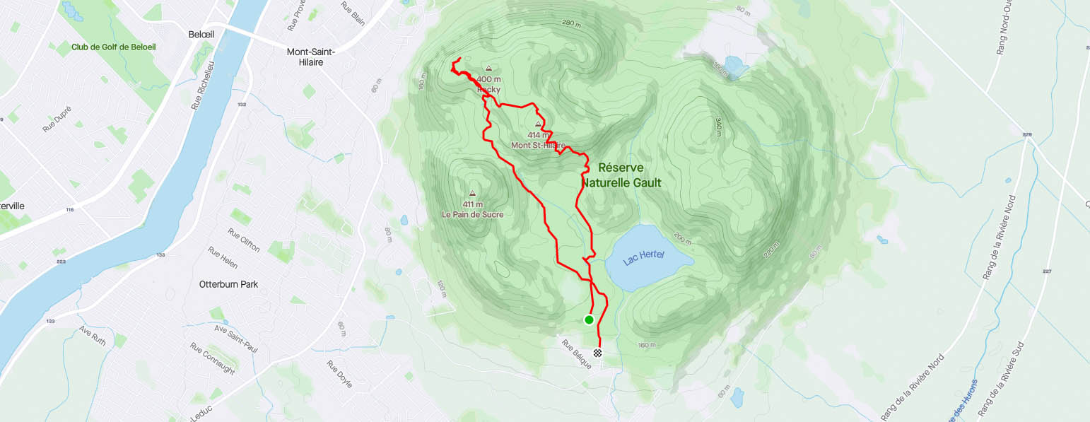 Plusieurs chemins sont possibles pour atteindre les trois sommets différents du Mont Saint-Hilaire. Pour plus de détails, consultez la carte des sentiers, ci-bas.