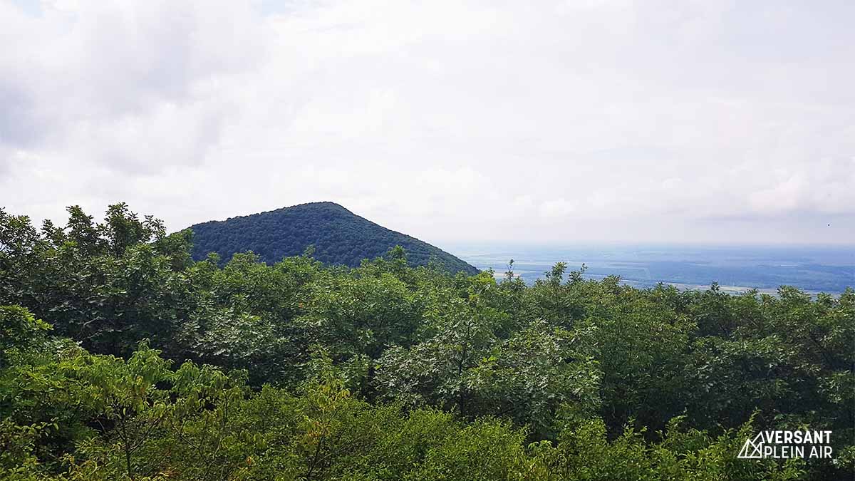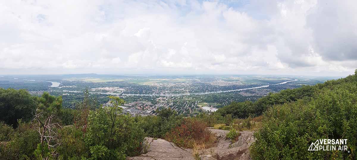 Nous avons atteint Dieppe en 1 h 15 min. Le sommet Rocky ne se trouvait pas très loin de là non plus, mais par manque de temps nous avons choisi ce premier sommet. Tout en haut, on grimpe quelques grosses roches avant de découvrir le panorama sous nos yeux. On y voit la ville lorsqu’on regarde en face, ainsi que des champs à perte de vue. En se tournant légèrement vers la gauche, on observe le Pain de Sucre, le plus populaire des trois. À l’arrière, on pouvait également apercevoir les gens sur le sommet Rocky.