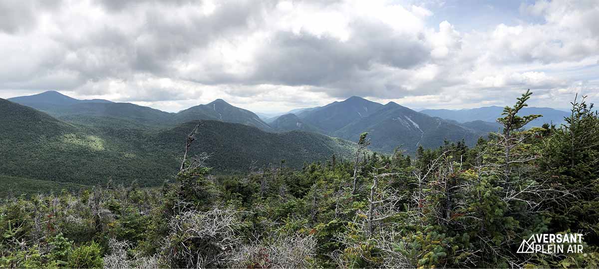 Une fois rendus au sommet, tous nos efforts sont récompensés. Le panorama est à couper le souffle. Bien qu’on ne puisse pas observer tout autour à 360 °, on peut s’installer confortablement sur le cap rocheux pour déguster un lunch, tout en admirant les sommets environnants, dont Colden et Algonquin.