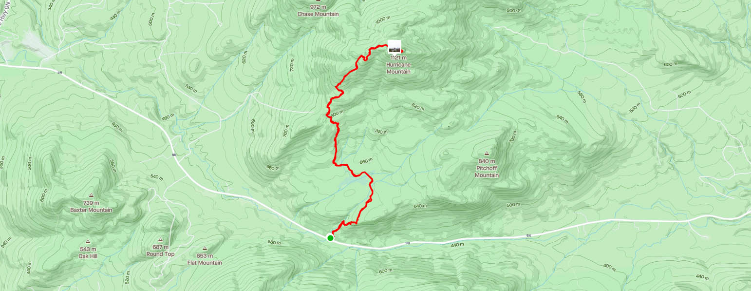 - Sentier : Hurricane Mountain Trail (à partir de la 9N)