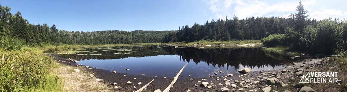 Le départ se fait du stationnement de Big Crow. À cet endroit, il est également possible d’emprunter une piste pour grimper Hurricane Mountain. Sous l’excitation, on est parti vers ce sentier, sans trop réaliser qu’il y avait une deuxième entrée qui indiquait très clairement Big Crow. Nous avons donc entamé la boucle en sens antihoraire, ce qui s’est avéré un bon choix finalement. Après trois kilomètres sur le Gulf Brook trail, nous sommes arrivées à l’intersection qui sépare le Soda Range trail et Hurricane. Les indications sont un peu confuses, mais il suffit de continuer sa route vers le Lost Pond campground. Quelques minutes plus tard, on longe le lac du même nom pour ensuite atteindre le premier point de vue, au sommet de Weston Mountain.