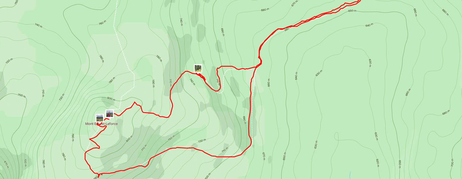 Pour rejoindre le stationnement du mont Ernest-Laforce, on doit quitter en voiture le Centre de Découverte et rouler plusieurs kilomètres sur un chemin de terre. Les indications sont simples à suivre. Sur place, beaucoup de gens étaient présents malgré le temps gris, car cette randonnée est très populaire auprès de tous. La piste est assez facile, tout en grimpant tranquillement à travers la forêt. Les points de vue apparaissent très vite, tout comme le Mont Albert au loin. Le décor semble changer complètement chaque fois qu’on traverse quelques mètres et qu’on lève la tête. C’est de toute beauté !