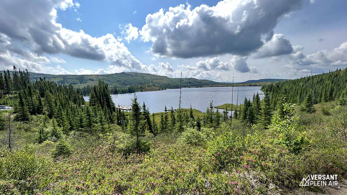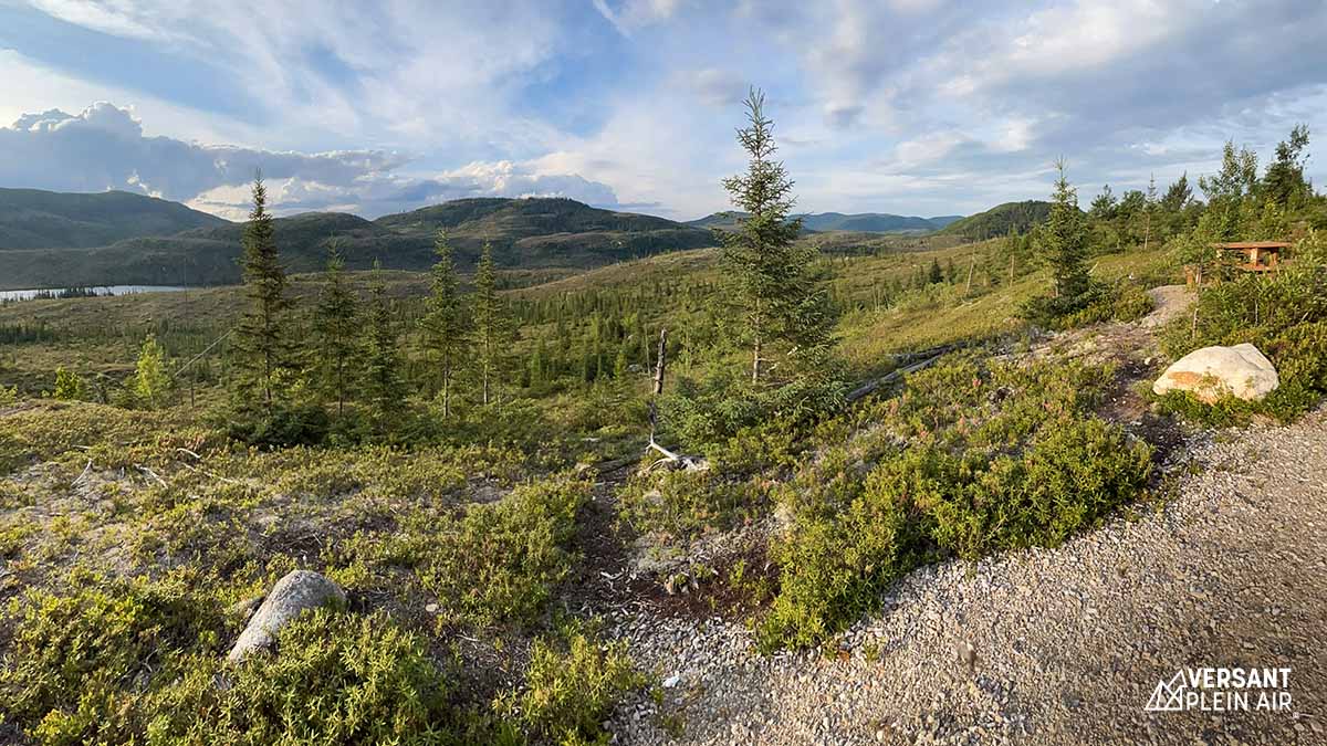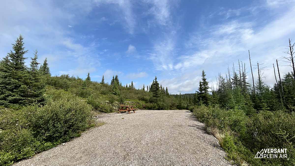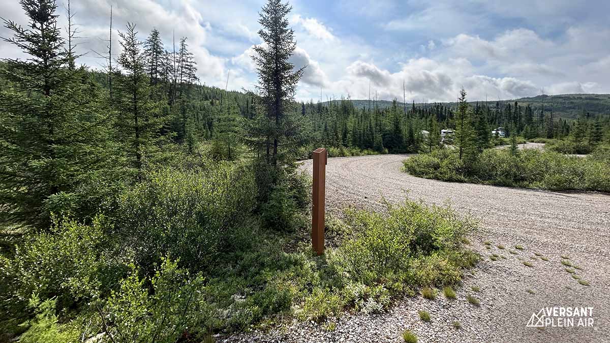 Malgré l’orage de la nuit précédente, un soleil rayonnant nous a réveillés en ce samedi matin. À ce moment, nous avons réalisé que notre campement vaste et privé dans le secteur Arthabaska (no 26) était entouré d’un décor féérique. Les sites sont tous espacés et le centre de service se situe à quelques minutes à pied (ou en auto) seulement. Nous nous sommes préparés et ensuite nous avons conduit une vingtaine de minutes pour rejoindre le stationnement du mont du Dôme qui se situe sur le territoire de la Zec des Martres, à la limite du parc national des Grands-Jardins.