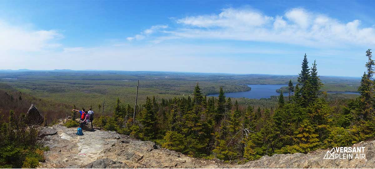 Nous avons atteint un premier point de vue après avoir monté dans un chemin très bien aménagé, avec des sections plus escarpées que d’autres. Le deuxième point de vue atteint se nomme Le Pic de la Roche Fendue, et pas très loin ensuite, on rejoint le Pic de l’Ours. À partir du sommet, on peut observer le Mont-Orford (853 m), mais également un superbe paysage à 360° tout autour. Le retour se fait sur le même sentier, en revenant sur nos pas.