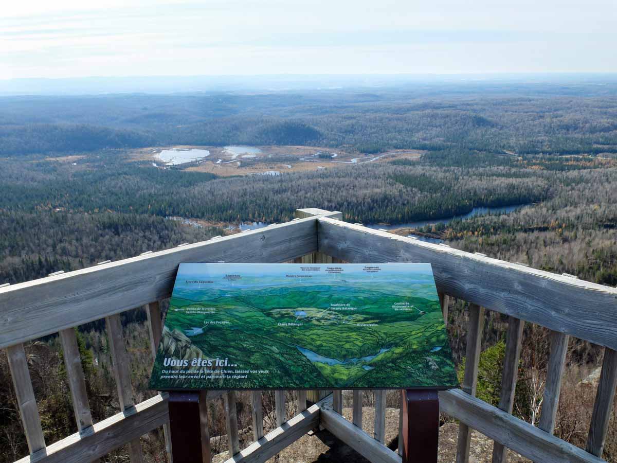 Le sentier du Pic-de-la-Tête-de-Chien est certainement le plus populaire du parc National des Monts-Valin. Si ce Pic est votre objectif final, la randonnée sera de 8 km aller-retour, et 340 mètres de dénivelé. Ayant envie d’une randonnée de plus longue durée, j’ai continué le sentier après le Pic-de-la-Tête-de-Chien en direction du Pic-du-Grand-Corbeau. Étant géré par la SEPAQ, le sentier est très bien balisé, avec de nombreux panneaux de direction tout au long du parcours.